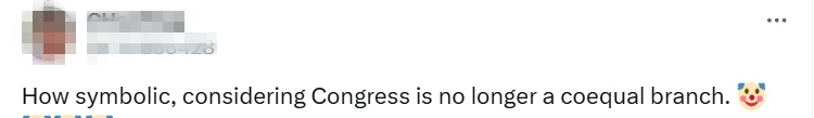 還有美國網民反諷説,“國會已不再是與其他分支平起平坐的機構,這何其具有象徵意義。”