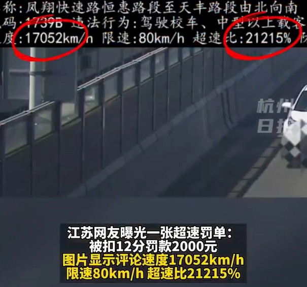 江蘇一罰單顯示車輛速度17052km/h,扣12分?交警回應