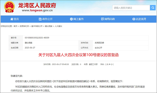 共青團龍灣區委在答覆中指出,90後的婚姻狀況確實對人口結構優化、社會和諧穩定及家庭文化傳承具有重大意義。