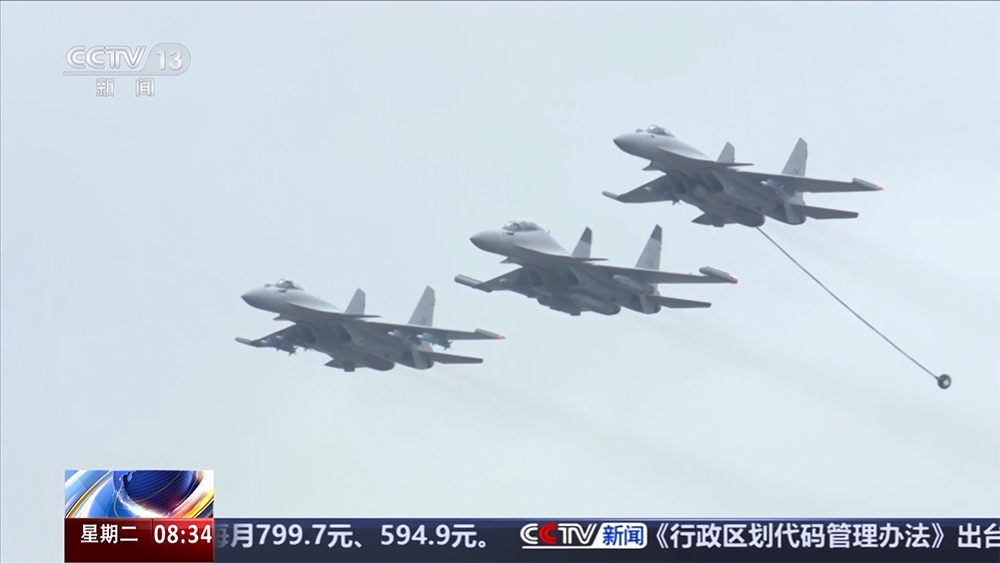 中國工程院院士 孫聰:任務系統的能力升級,在防禦性制空裏它可以驅離敵人國門之外。中國過去沒有艦載機,對航空工業來説,我們現在開闢了這麼一個領域,從陸基走向海洋,航母上的航空作戰力量,從體系要素上把它配齊了,中國航母走向深藍的基本要素是具備了。