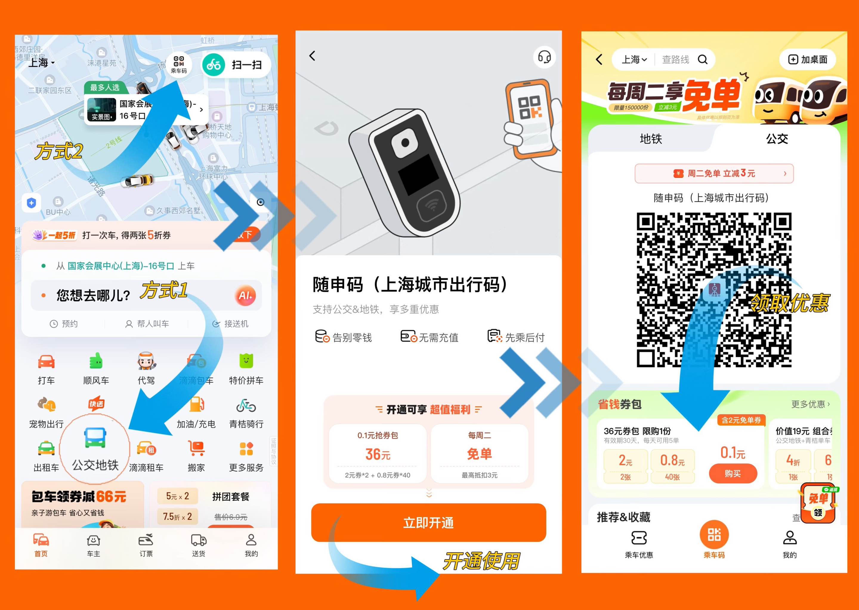 滴滴乘車碼開通及使用流程