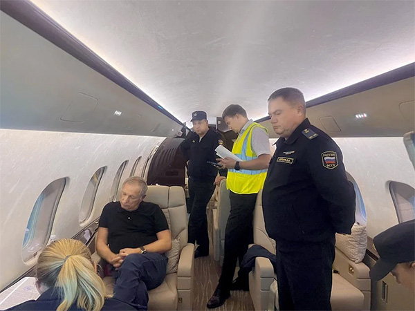 照片顯示,斯特魯科夫(左)在私人飛機上被俄執法人員攔下 《生意人報》