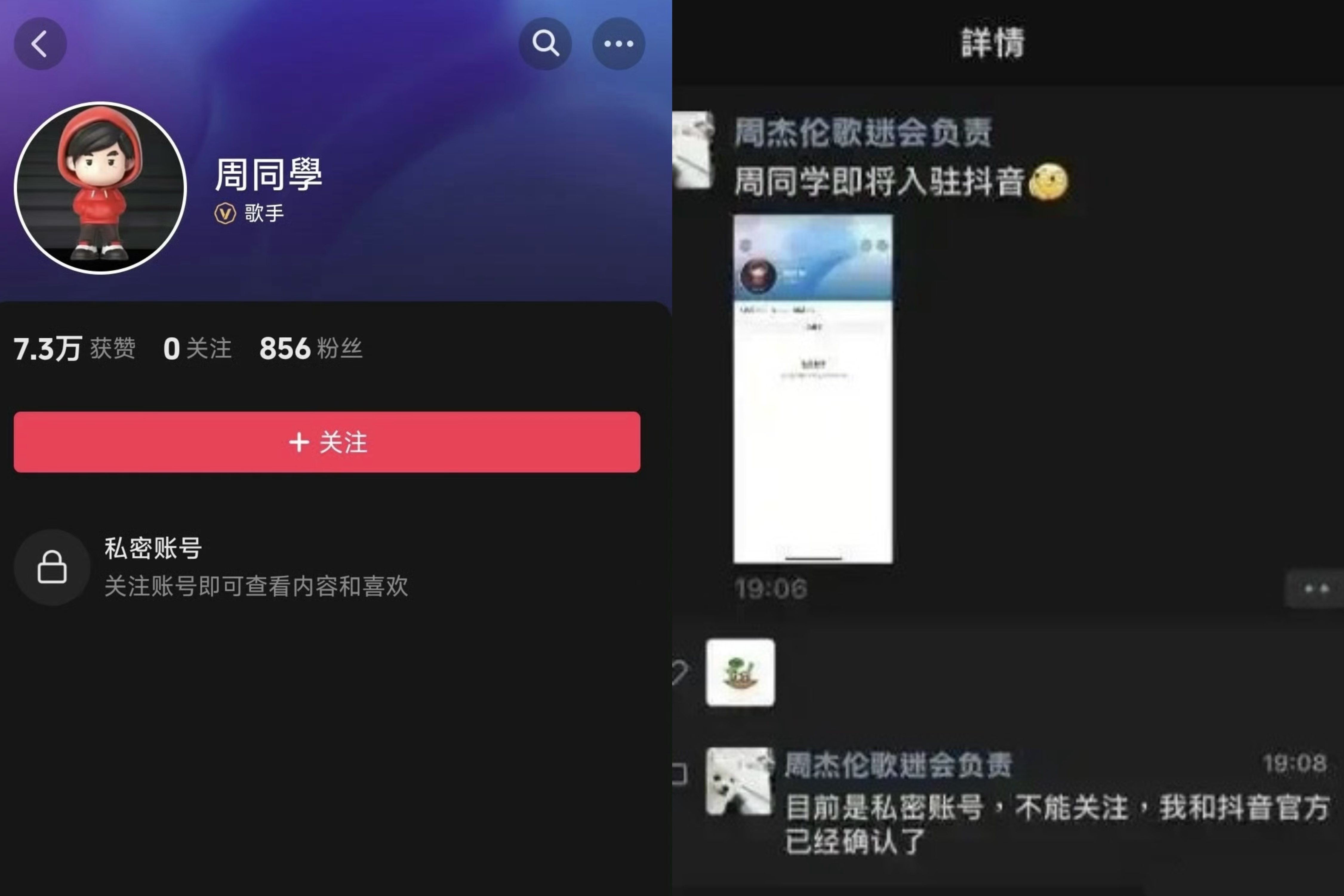 7月8日,據多家媒體消息,周杰倫即將入駐抖音平台,稱“周杰倫歌迷會負責”朋友圈證實了此消息,目前是私密賬號,無法關注。更有網友直接爆料,此次與周杰倫簽約,抖音方面花費了九位數。