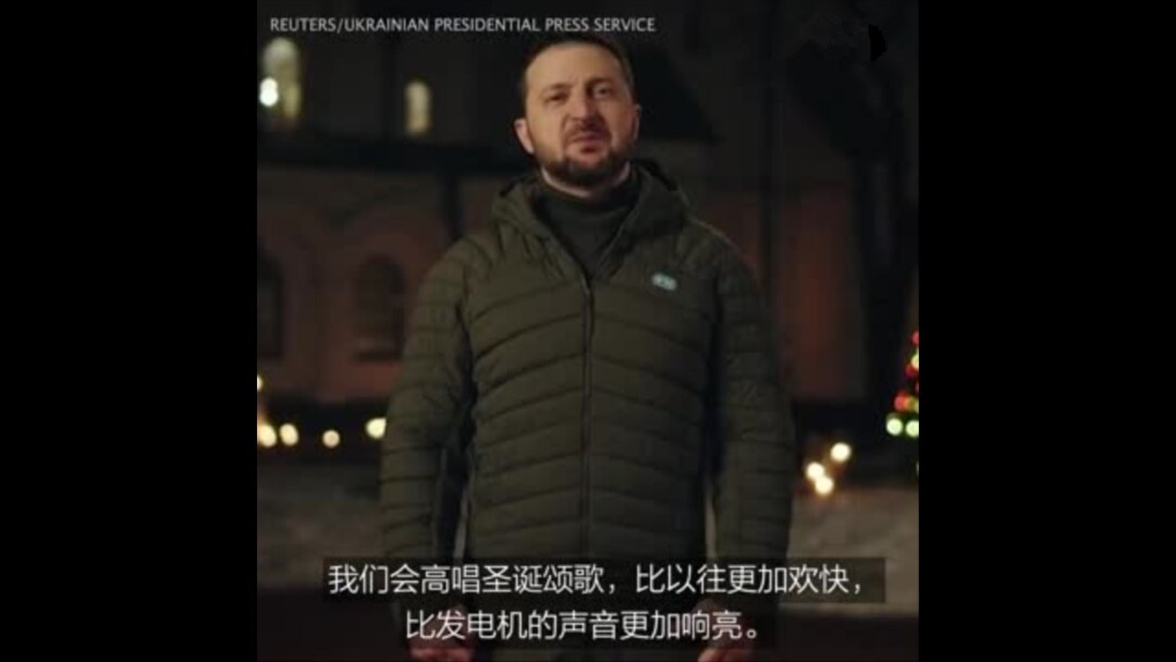 2023年,烏克蘭首次在12月25日慶祝聖誕節,而不是東正教傳統的1月7日。圖為澤連斯基在12月24日發表聖誕致辭。視頻截圖