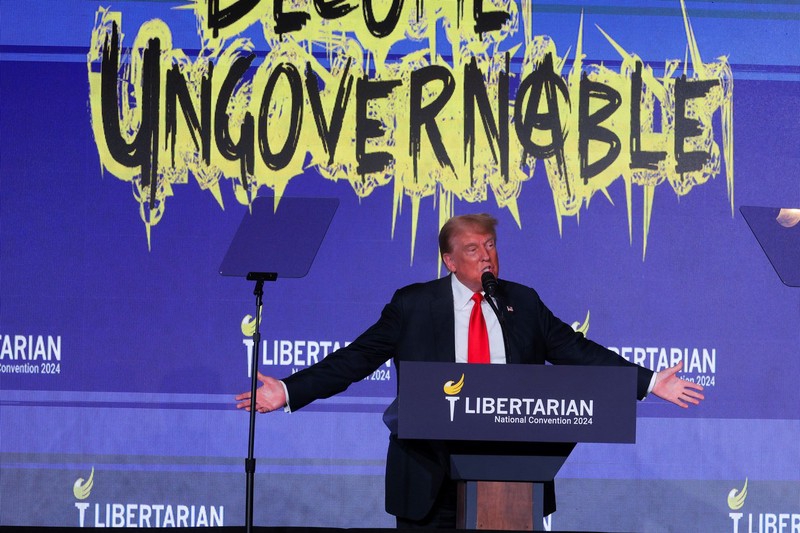 2024年5月25日,美國華盛頓,美國前總統特朗普出席自由黨全國大會。 IC Photo