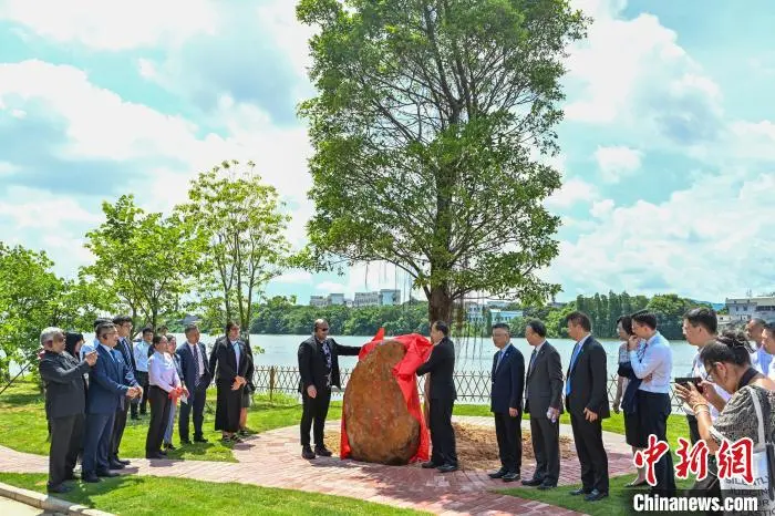 7月8日,廣東江門,瑙魯總統戴維·阿迪昂親手植下一棵象徵家族根脈的榕樹。中新社記者 陳驥旻 攝