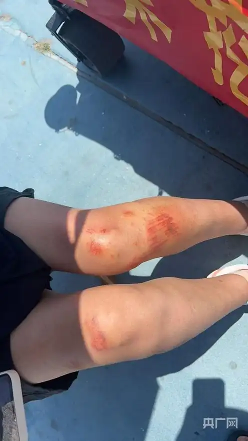 劉玉榮的雙膝被礁石劃傷 (央廣網發 受訪者供圖)