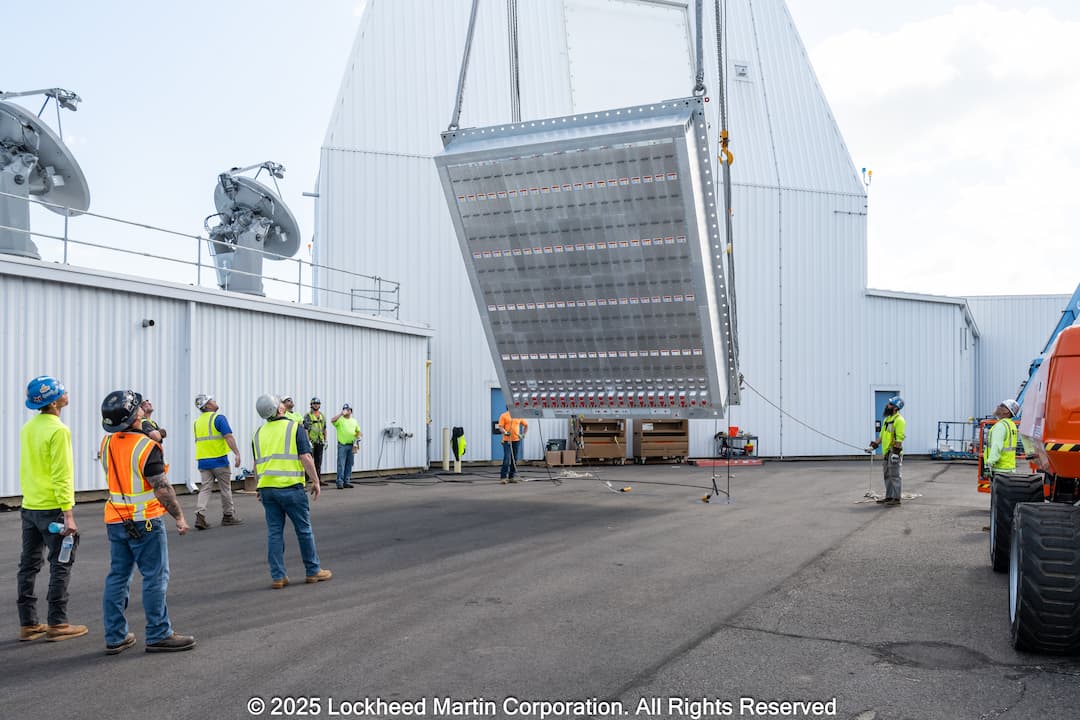 交付日本的AN/SPY-7(V)1雷達天線陣面正在測試設施中進行吊裝 洛克希德·馬丁公司