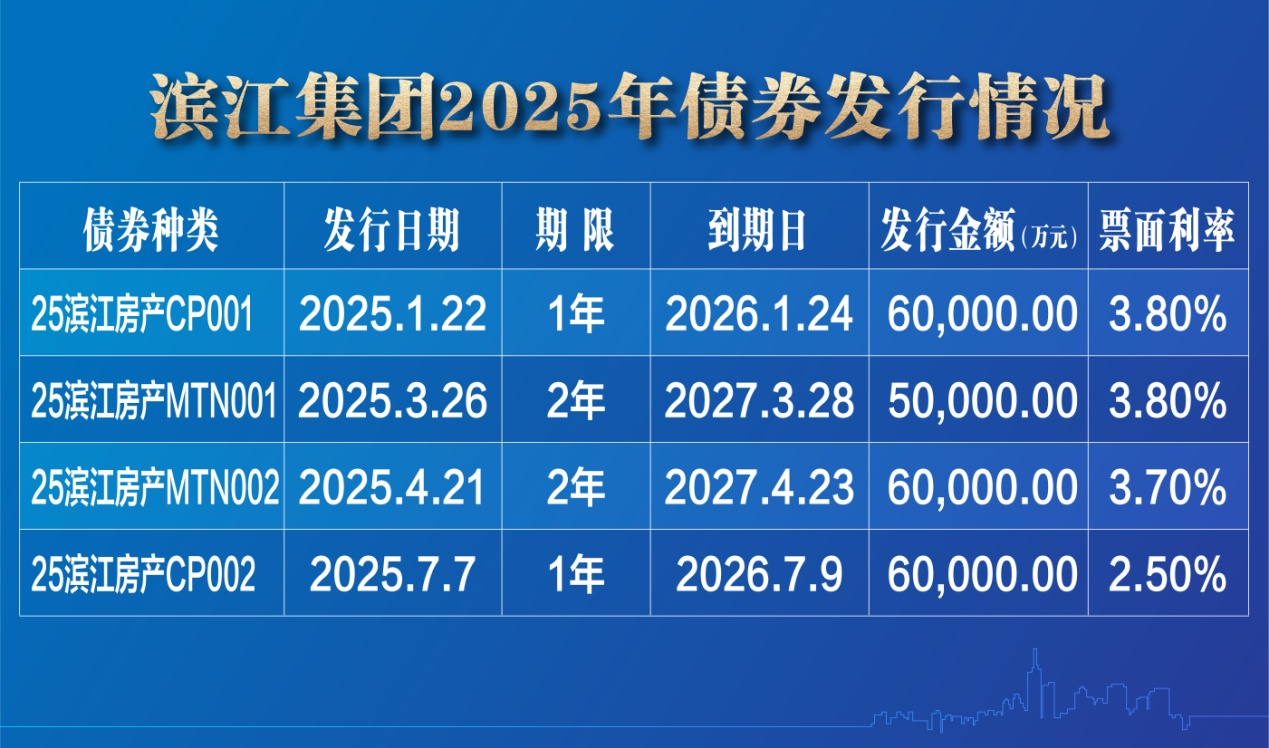 2025年7月7日,濱江集團成功發行2025年度第二期短期融資券,規模為人民幣6億元,發行利率2.5%,全場倍數5.98倍,非銀機構中標比例60%!
