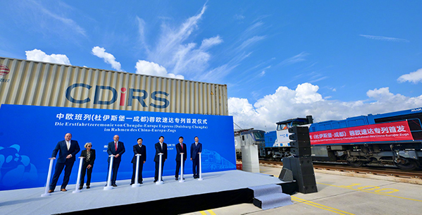 7日上午,王曉暉前往中歐班列樞紐杜伊斯堡港調研並出席中歐班列(杜伊斯堡-成都)蓉歐速達專列首發儀式。杜伊斯堡港是共建“一帶一路”在歐洲的重要物流樞紐和門户,也是中歐班列在西歐地區線路最廣、班次最多、運量和貨值最大的節點。