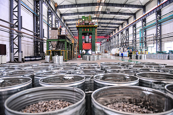 遼寧瀋陽,中鋁瀋陽有色金屬加工有限公司生產線。 視覺中國