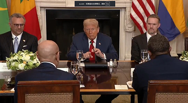 當天出席午餐會的還有加蓬、幾內亞比紹、利比里亞和塞內加爾四國的領導人。他們受特朗普邀請而來,在會上對他大加讚賞,鼓勵美國到非洲投資,開發其豐富的礦產資源。