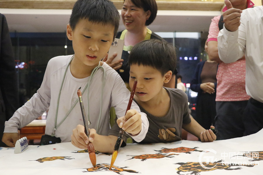 親情在筆尖流淌,感動在現場瀰漫。活動中,兩位台灣小朋友也積極加入繪畫,為金龜填色後似乎還不過癮,一位小朋友在畫紙上一筆一劃創作起來,不一會兒,一隻活靈活現的小蝦便現於紙端,仿若在金龜的帶領下返家,其專注繪畫的模樣也贏得滿場讚許。這位小朋友正是陳女士的兒子。