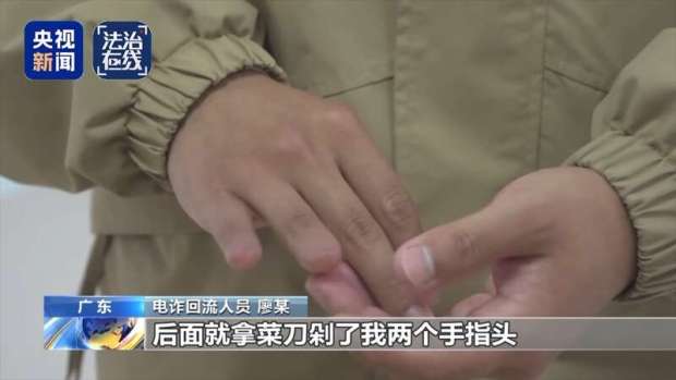 電詐迴流人員 廖某:在小黑屋裏面打我,七八個人一起打,棍子、PVC管、鞭子都有,四個手指的指甲都拿鉗子拔了,後面用菜刀剁了我兩個手指頭。