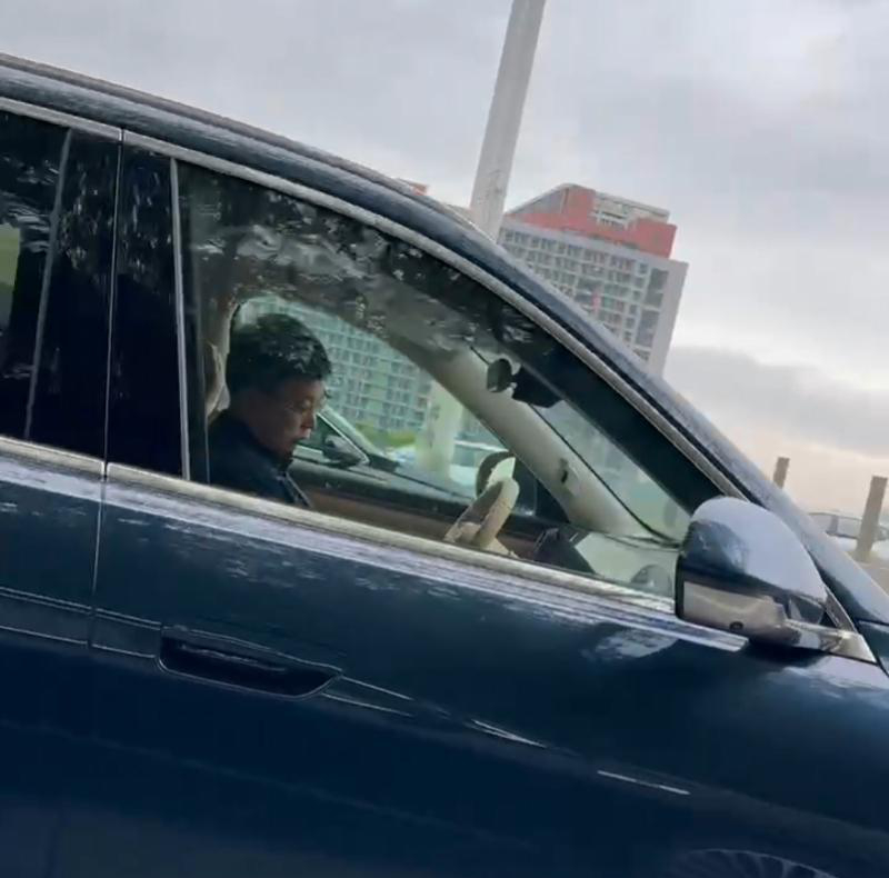 今年5月,餘承東在駕駛問界M8時疑似分神,被網友拍下 網絡