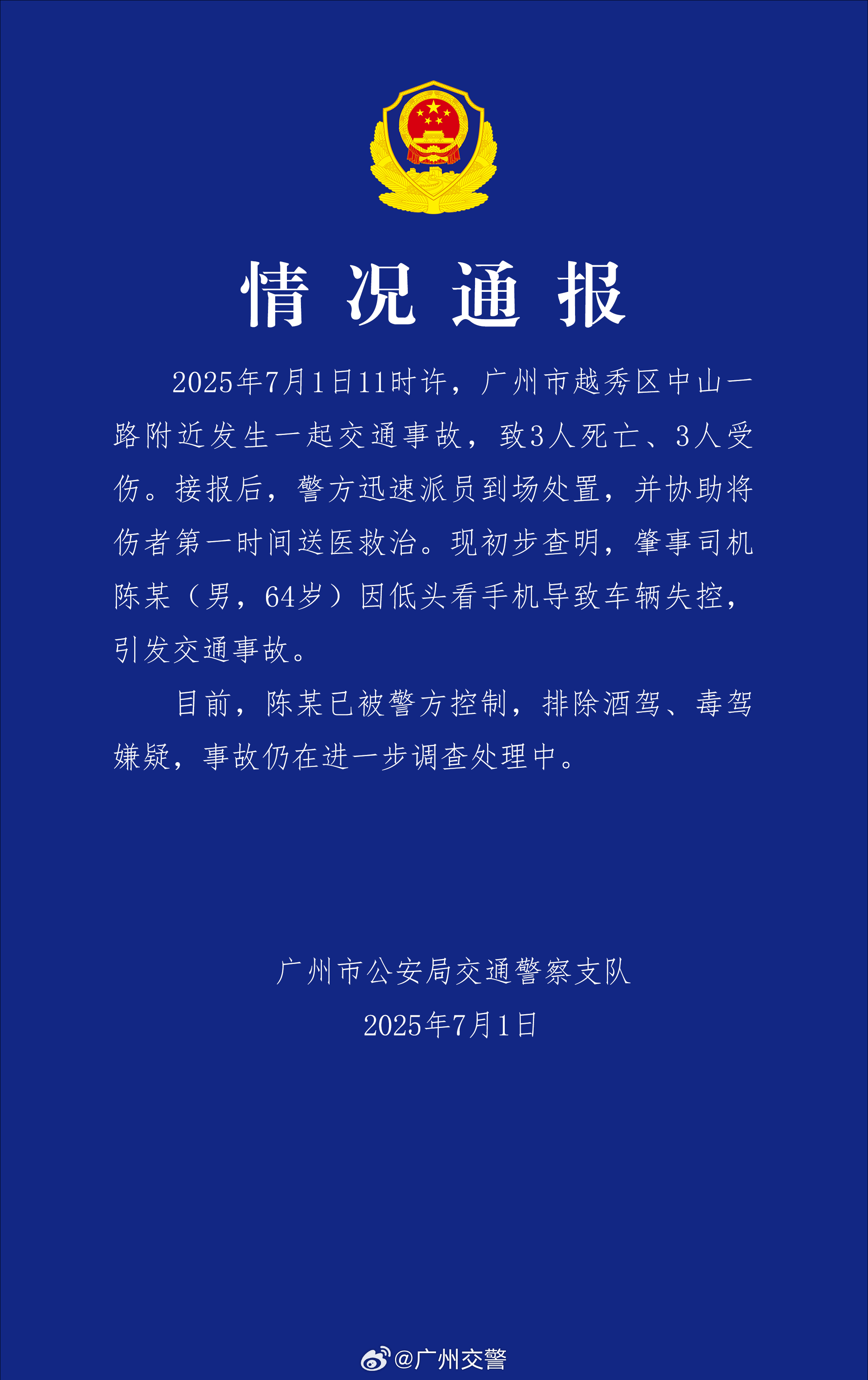 7月1日,廣州一司機開車低頭看手機,釀成3死3傷的慘劇 @廣州交警