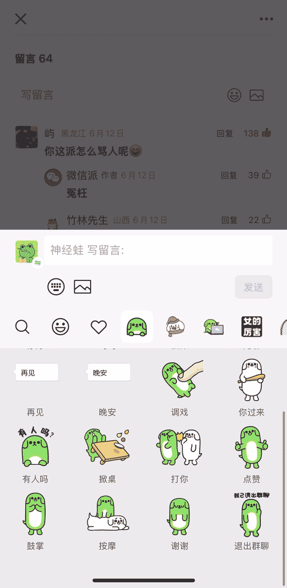 簡單來説,公眾號評論區可以直接發表情包了。自己的表情包不夠用,還能搜索來湊。