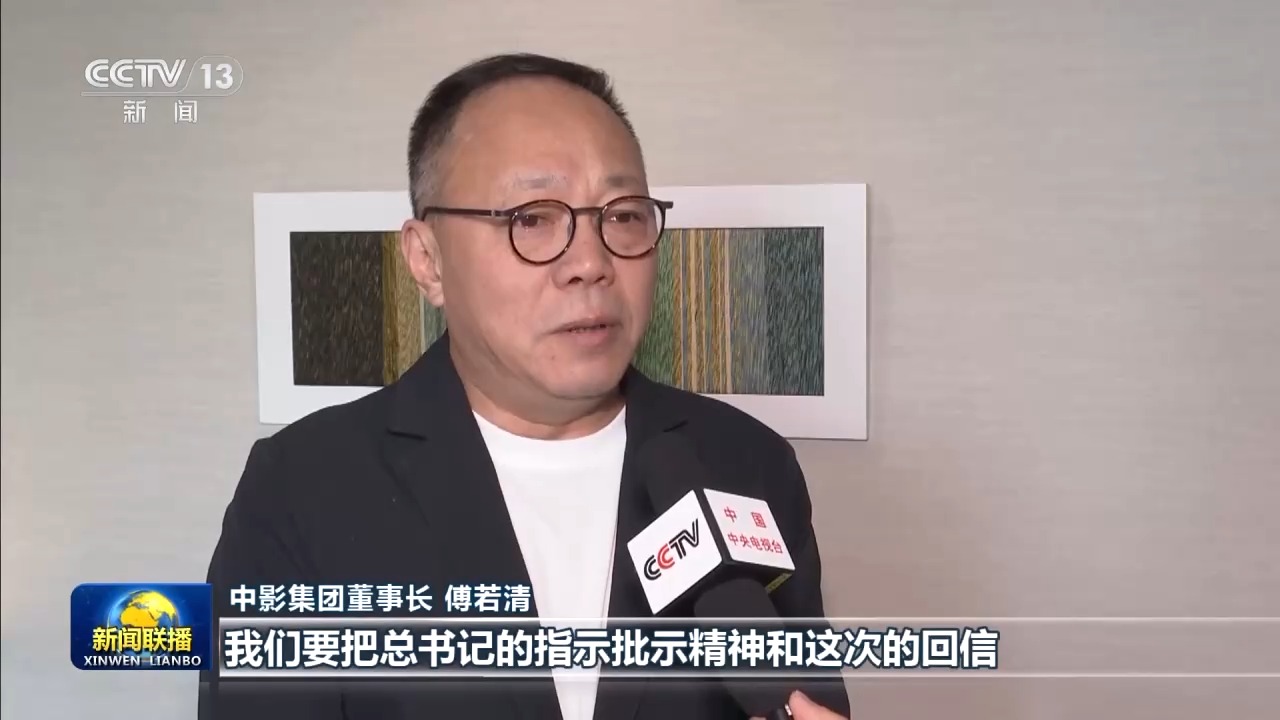 **中影集團董事長 傅若清:**我們要把總書記的指示批示精神和這次的回信,化為我們未來進一步做好中國電影的動力。這些年來,特別是今年,中國電影一路票房飄紅。我們要不辜負總書記對我們的期待和期望,多創作更多、更好的貼近生活、貼近人民的作品,為中國電影邁向電影強國而努力。