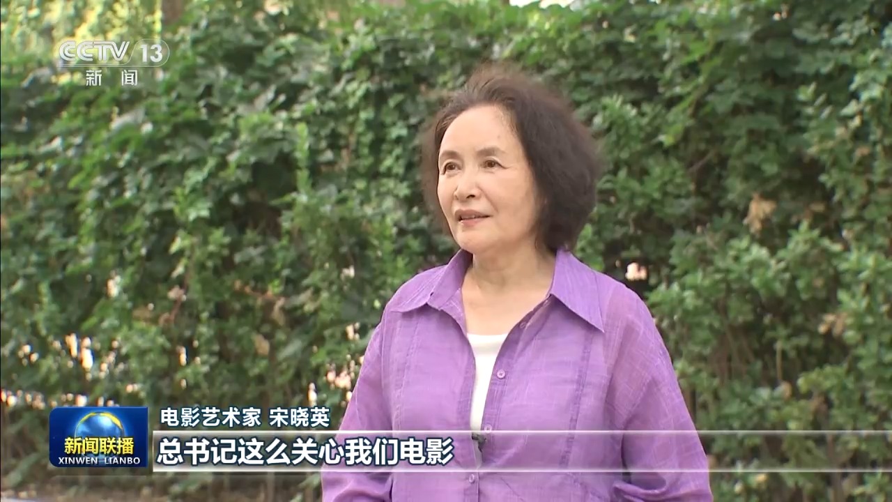 **電影藝術家 宋曉英:**總書記這麼關心我們電影,他説我們要置身於生活沃土之中,就是説我們應該很好地去紮根生活、體驗生活。我一定要以總書記的指示精神為引領,為電影事業作出我的貢獻。