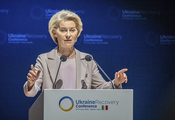 7月10日,歐盟委員會主席馮德萊恩在意大利就烏克蘭問題發表講話。 視覺中國