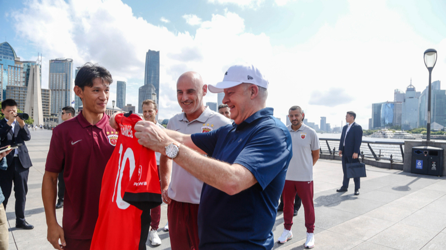 散步路線途經外灘濱江區域,阿爾巴尼斯總理與穆斯卡特親切交談,沿江漫步共賞申城風光。散步期間,隊長王燊超向阿爾巴尼斯總理贈送了一件印有其名字的上海海港球衣,總理欣然接受禮物並表示:“三顆星代表着上海海港隊贏得的三個聯賽冠軍,希望你們在隊服上再添一顆星。這件球衣我一定會自豪地穿回澳大利亞展示,衷心感謝凱文教練,感謝王燊超隊長!”