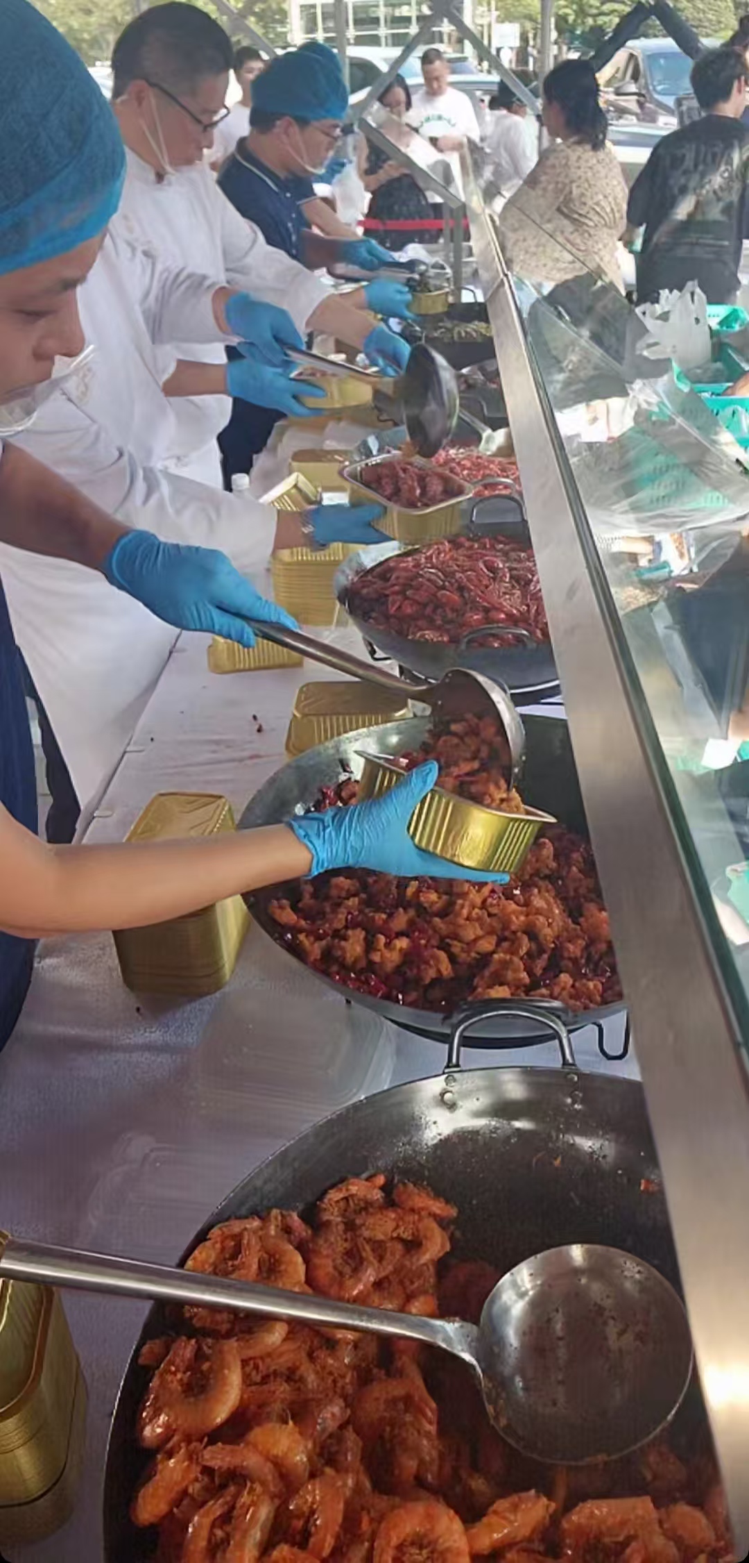 不過,在鄭州永和鉑爵國際酒店相關負責人個人微信視頻號7月12日下午的直播間裏,觀察者網發現,其外擺攤位上,滿滿一鍋的小龍蝦不到5分鐘便幾乎售罄。網友紛紛留言稱讚分量足、性價比高,也有網友遺憾表示“很想吃,可惜不在當地”。