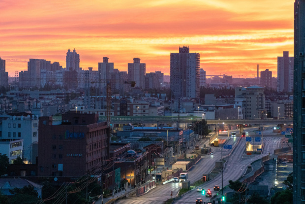 2025年7月1日,日出時分,上海楊浦區。視覺中國 圖