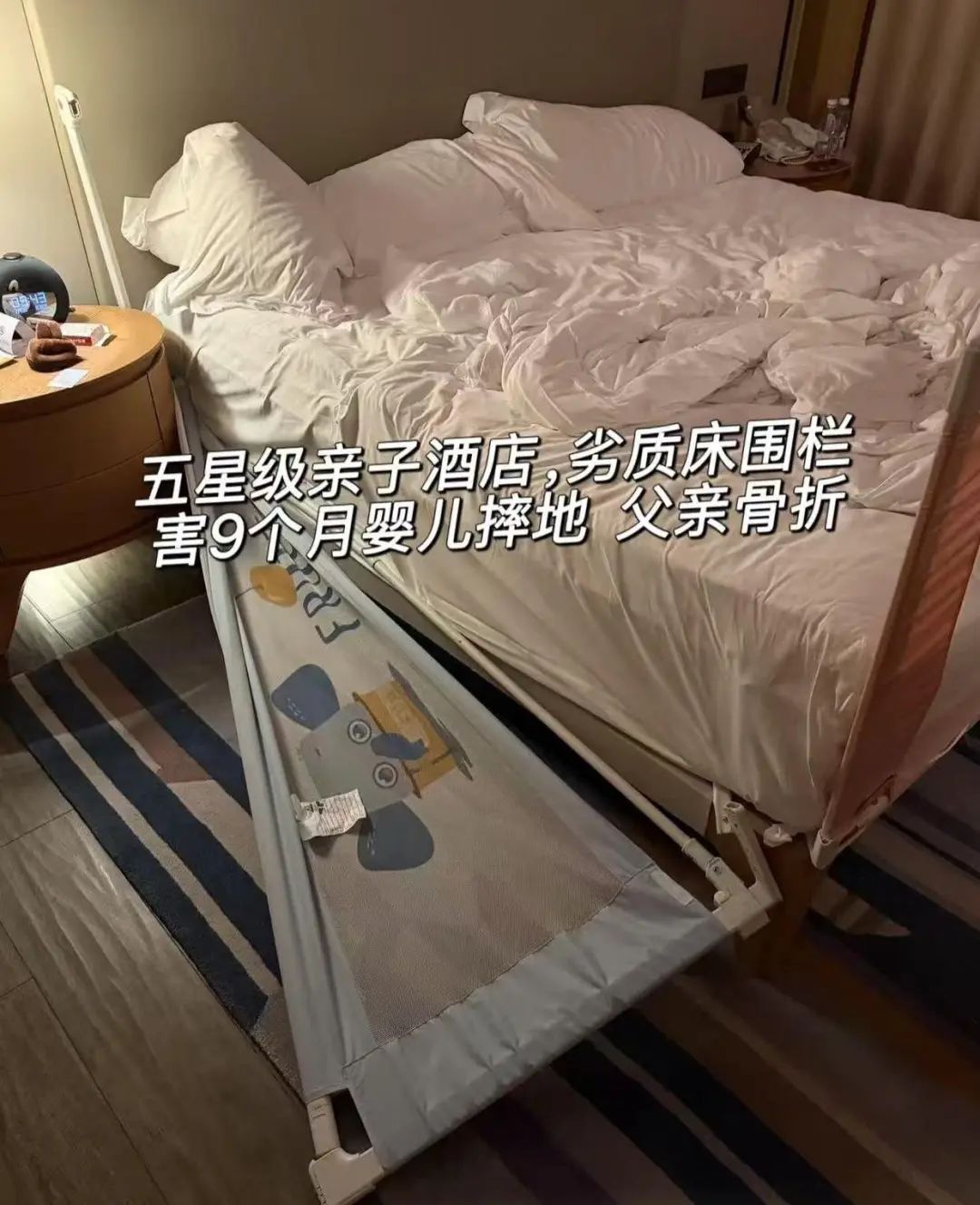 據九派新聞此前報道,近日,一寶媽發帖稱,三亞海棠灣仁恆皇冠假日度假酒店存在護欄質量問題,導致其9個月大的寶寶半夜從牀上摔落,孩子父親急於尋找孩子,又被護欄絆倒,致使其手臂骨折。