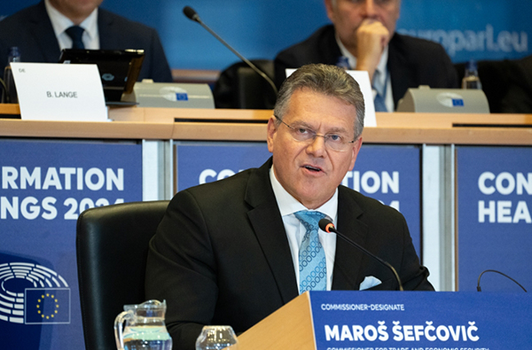 歐盟委員會負責貿易和經濟安全等事務的委員謝夫喬維奇 歐洲議會