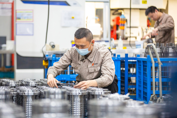 2025年7月10日,江蘇省南通市,車間工人正在趕製精密零部件訂單。 IC photo