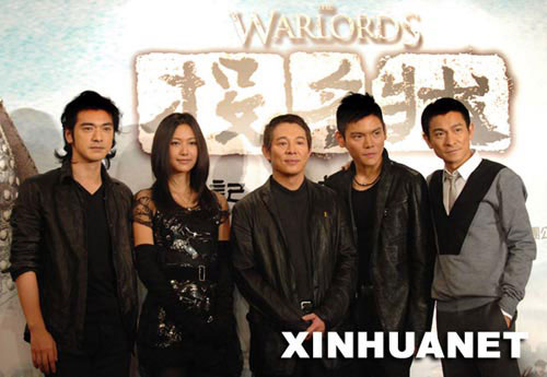 2007年12月10日,電影《投名狀》演員金城武、徐靜蕾、李連杰、向佐、劉德華(由左至右)在新聞發佈會上合影。 新華網