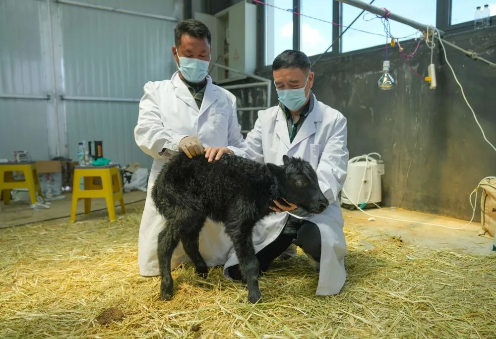 牛犢體重16.75公斤,個頭比普通新生牛犢更大,全身通黑,已經能夠正常行走並進食母乳,身體狀況良好。這是世界上第一頭融合全基因組選擇和體細胞克隆技術的犛牛。