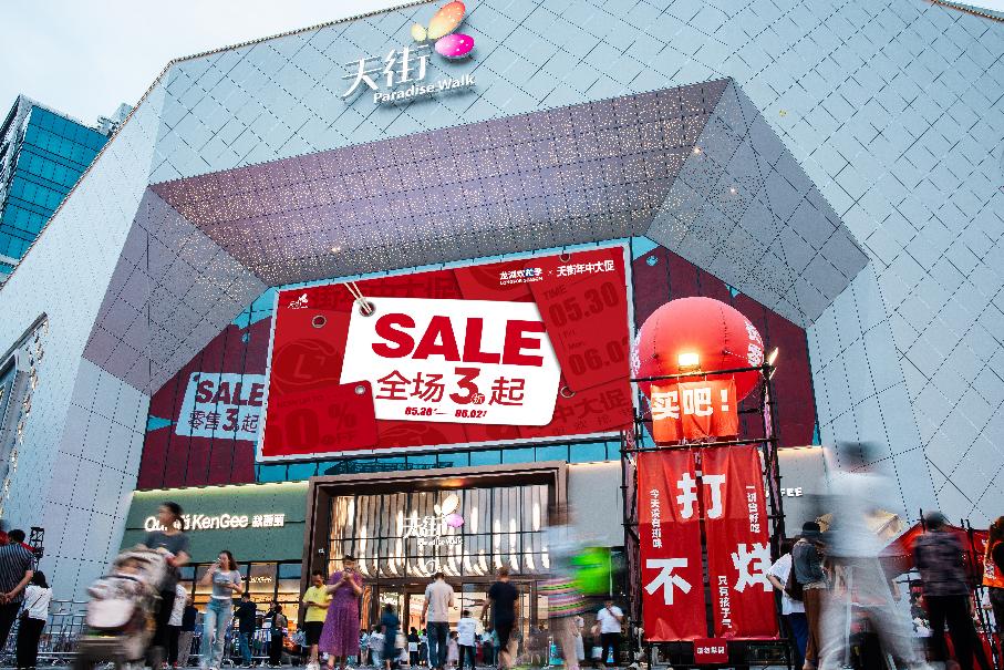 在橫跨端午小長假的“天街歡搶節”檔期,實現累計營業額(去車)19.6億元,日均同比提升49.7%,日均客流同比提升24.9%,客流峯值超600萬的業績。