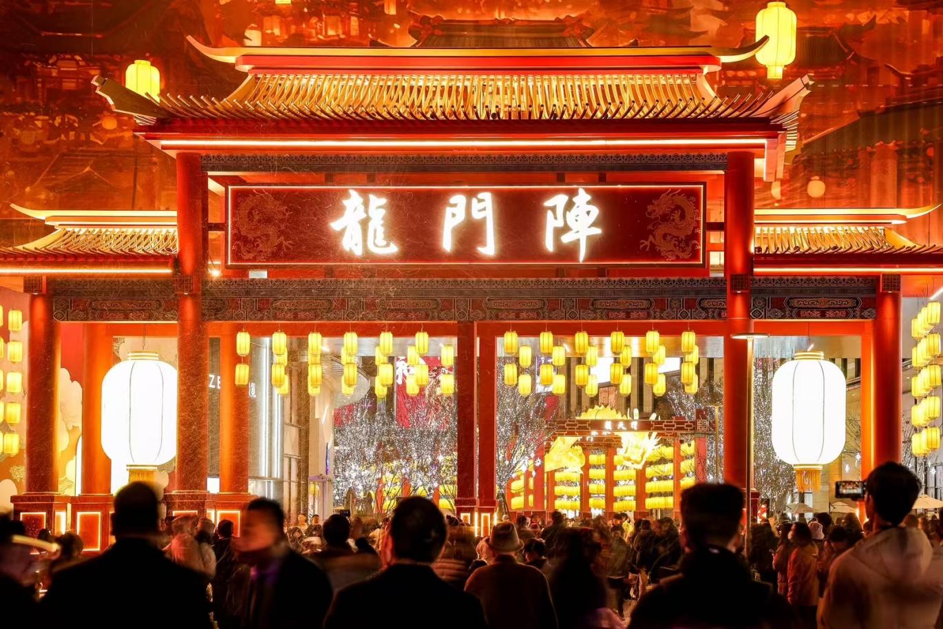 春節期間,龍湖商業旗下的全國天街,就以“天街廟會”為核心,打造了一場貫穿南北的沉浸式年味盛宴,北京長楹天街以1800平方米巨型“福”字畫卷與國家級非遺宮燈構築東方美學地標;合肥高新天街則以百米“汪滿田魚燈” 百米燈河巡遊再現傳統非遺盛景;重慶時代天街2025天街廟會的30米超大“龍門陣”和“故宮同款紅牆”,更是吸引了央視元宵晚會導演組的關注,成為元宵晚會重慶分會場……