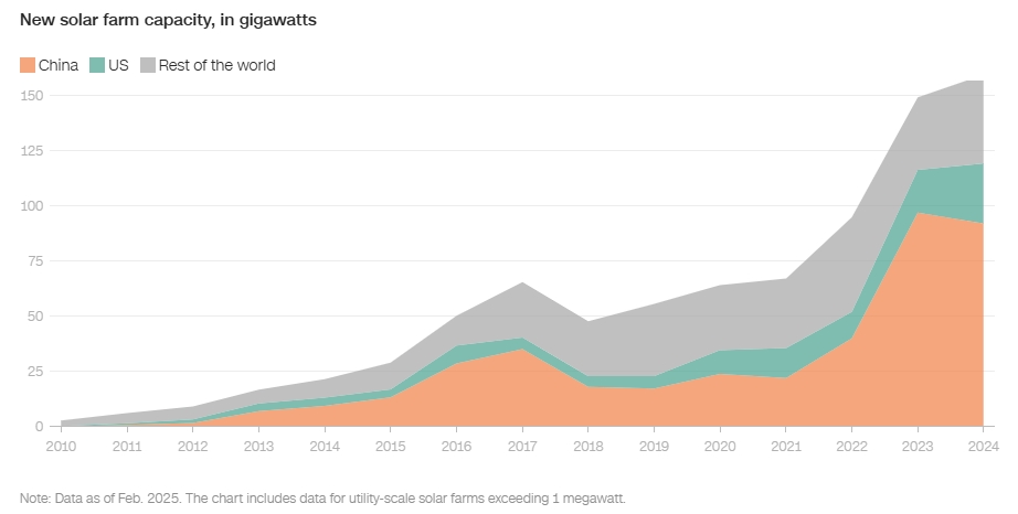 7月16日,美國有線電視新聞網(CNN)刊文稱,這一令人難以置信的數據可以用來概括當前新清潔能源格局,即美國在該領域已經徹底輸給了中國。報道還援引分析稱,“大而美”税收與支出法案的塵埃落定,意味着特朗普政府親手終結了美國清潔能源行業的命運。