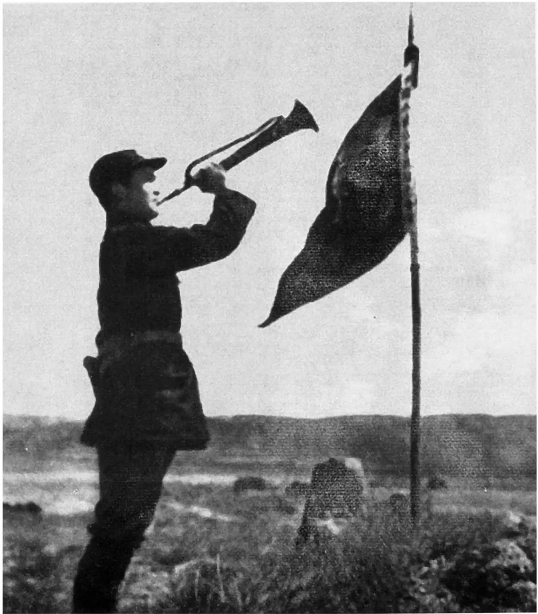 斯諾拍攝的經典照片《抗戰之聲》,小號手為紅一方面軍營教導員謝立全。這張照片曾出現在《紅星照耀中國》中文版封面上。