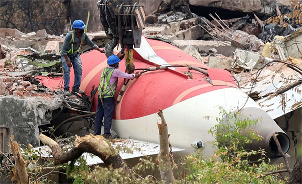 工人們正在清理墜毀的印度航空客機殘骸 華爾街日報