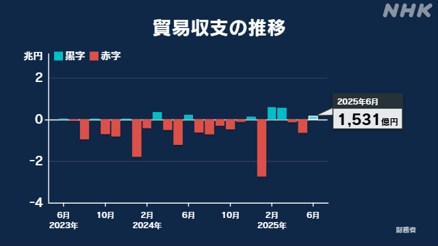 此外,日本6月的貿易收支有1531億日元(約合74億人民幣)的順差,為三個月來的首次。