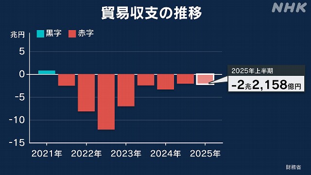 此外,日本今年1月至6月的貿易統計數據還顯示,日本今年上半年的貿易差額(即出口減去進口)為逆差2.2158萬億日元(約合1071億人民幣),但數額相比去年同期收窄了34.2%。