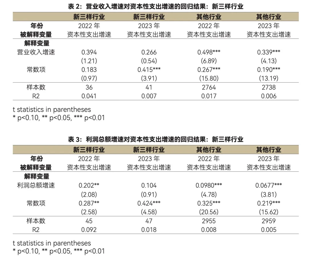 同時,“新三樣”行業的資本性支出增速與其營業收入和利潤總額增速的相關性並不顯著。這與其他絕大多數行業投資行為跟隨市場形勢做出改變的表現形成了鮮明對比,暗示其投資決策背後確實可能有非市場化因素的驅動。