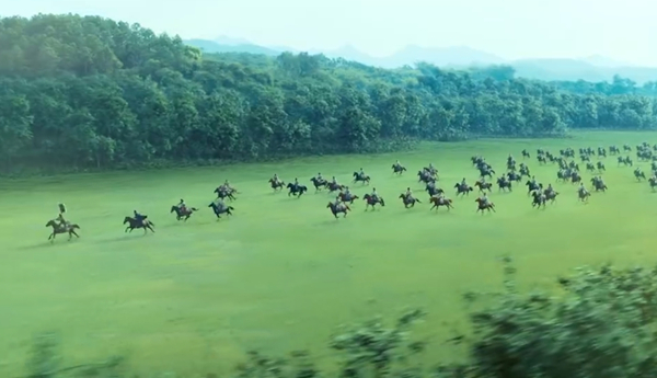 各路馬隊一路向北疾馳的畫面,配上熱血的配樂,有點燃,北馬揹着的荔枝罈子和雙層甕的細節設計還原度也很高。