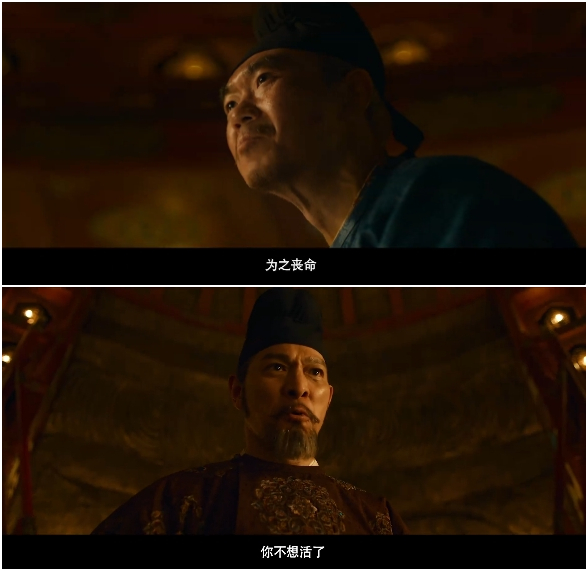 影片的另一情緒高點源自李善德找右相楊國忠(劉德華 飾)攤牌的那場戲,對話和情緒張力相當還原原著。當李善德字字鏗鏘地説出“不勞一文而轉運饒足,下官以為大謬”時,觀眾敬佩這個“唐代牛馬”的勇敢。他宣泄了累積已久的憤怒,為苦於徭役和荔枝錢而逃驛的村民、奔勞涉險的騎手、心血全毀的嶺南峒人發聲,不顧生死,大聲質問當朝右相。