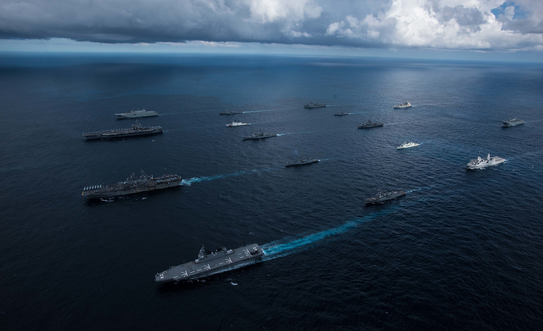 “護身軍刀-2019”中的海軍陣容,如果再算上海上自衞隊的“國東”號運輸艦,此次演習的“大甲板”將多至6艘,但關鍵的航空母艦仍只有1艘 美國國防信息可視化分發平台網站DVIDS