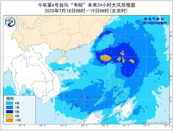 中央氣象台7月18日6時發佈颱風藍色預警: