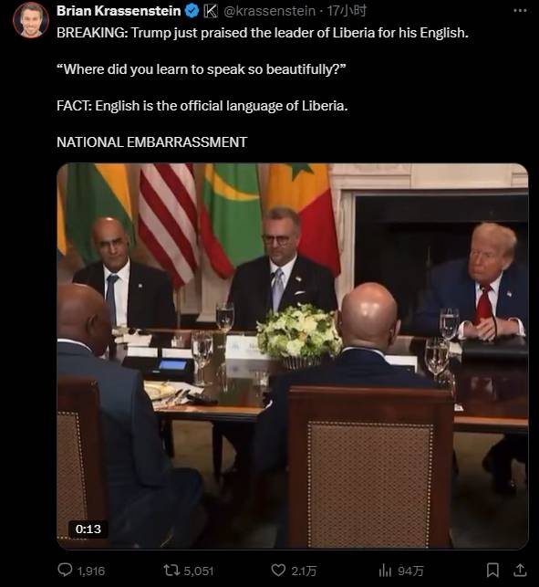 先説説特朗普最近對利比里亞總統的評論吧。他説人家英語説得不錯,好像挺驚訝似的?説實話,這個真沒讓我意外,反而讓我想起他以前是怎麼説非洲的——用一些非常難聽的話,比如稱非洲一些國家是“糞坑國家”,引用錯誤圖片批評非洲的土地改革政策。