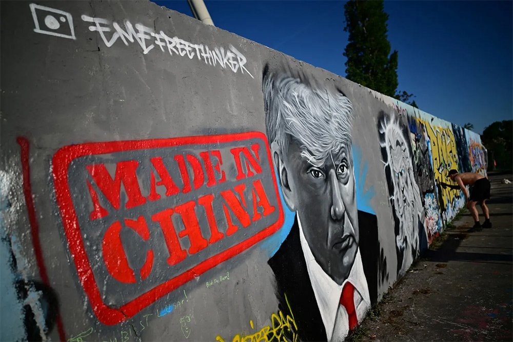 當地時間4月26日,柏林一幅描繪特朗普的塗鴉。 法新社