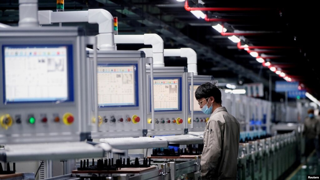安徽合肥,一家生產電動汽車電池工廠的生產線。(2021年3月30日)路透社