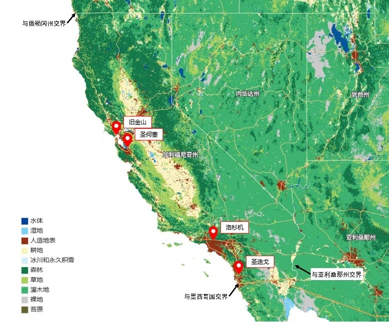 加州地圖截自中國自然資源部 天地圖