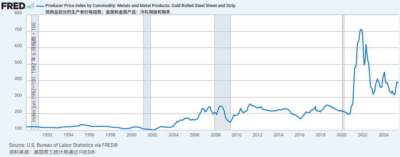 到2019年,特朗普取消了用於加州高鐵的9.28億美元,還收回了一些撥款,合計減少了近10億美元,對工程建設產生了不利的影響。2020年新冠疫情席捲全球,美國基建和其他領域一起陷入衰退。還未擺脱疫情的影響,美國基建行業又遭遇建材價格上漲,以冷軋型鋼為例,2021年的生產者價格指數是2020年的三倍還多,至今仍處於較高水平。