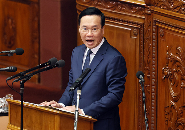 2023年11月,時任越南國家主席的武文賞在日本國會發表講話。 視覺中國